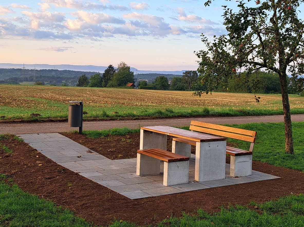 Auf unserem barrierefreien Rundwanderweg gibt es seit August 2023 am Bolzplatz Krummhardt eine neue Sitzgruppe.