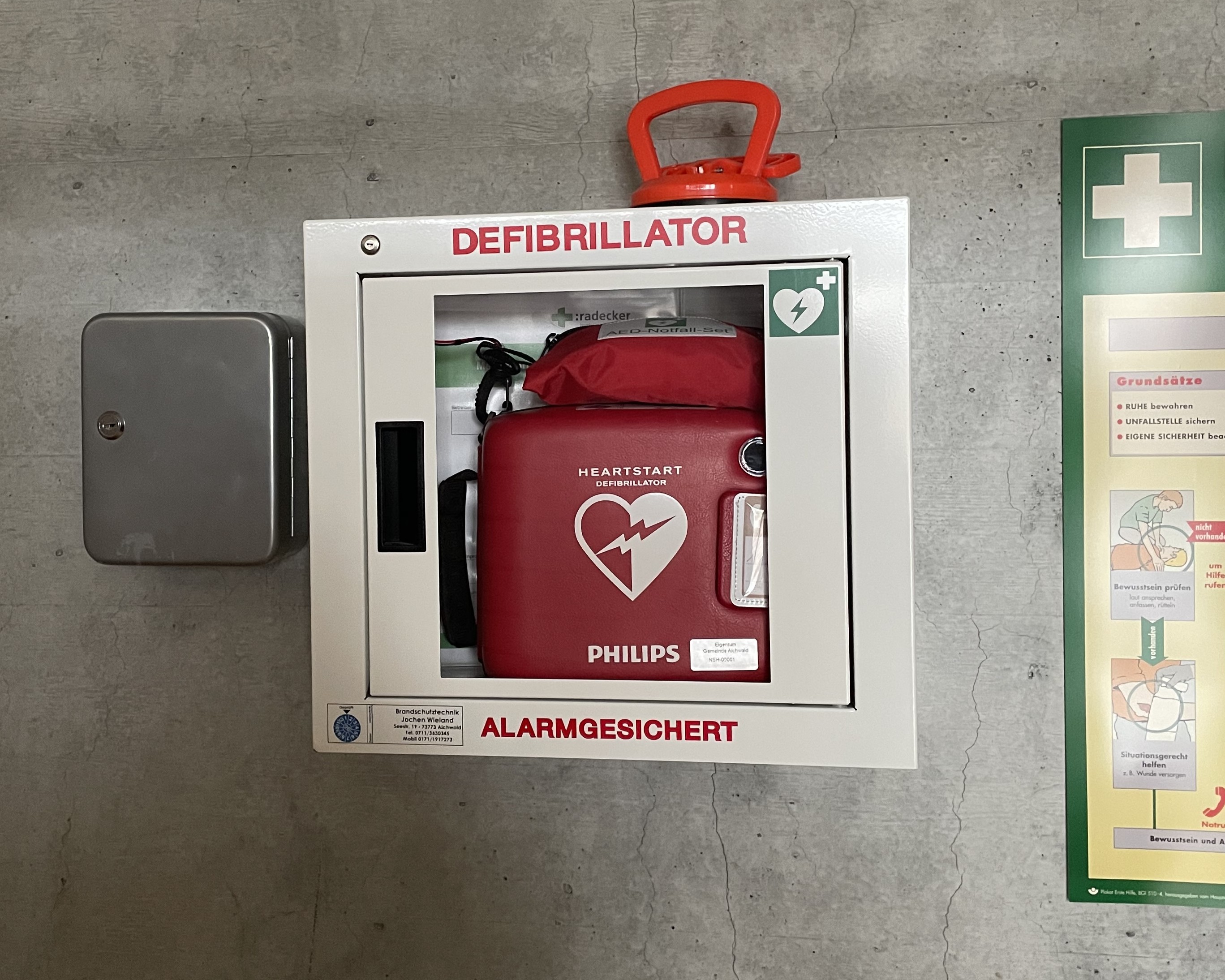 In einem solchen Notfall zählt jede Minute. Deshalb stehen in unserer Gemeinde mehrere Automatisierte Externe Defibrillatoren (AED) zur Verfügung. Diese Geräte können Leben retten, noch bevor der Rettungsdienst eintrifft.