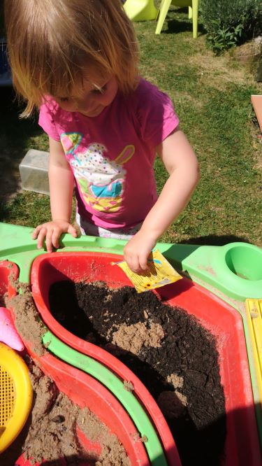 Vielleicht unseren Miniatur-Kinder-Garten? Aber vergesst Ihr auch immer, wo Ihr welche Samen ausgesät habt?